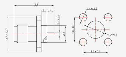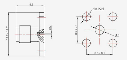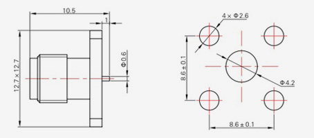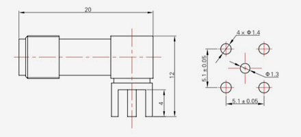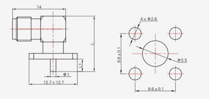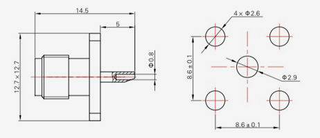 | SMA-KFD45 | 14.4 | 2.4 | 0,5×0,2 | Φ4.1 | Φ4.2 |