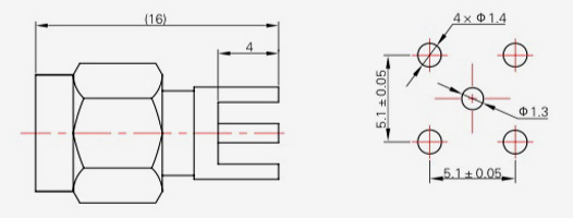 | SMA-KFD13 | 16 | 4 | 0,5×0,2 | Φ4.1 | Φ4.2 |