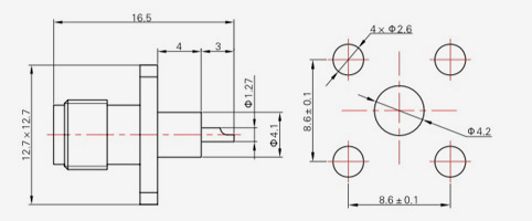 | SMA-KFD73 | 16 | 4 | 1,27×0,2 | Φ4.1 | Φ4.2 |